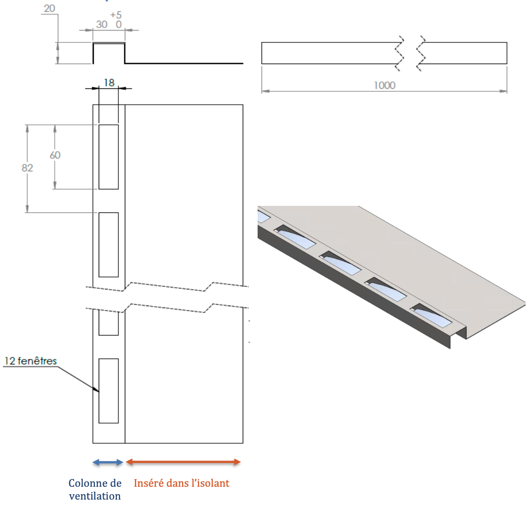 | Surface d’ouverture | > 10.000 mm² par mètre linéaire |